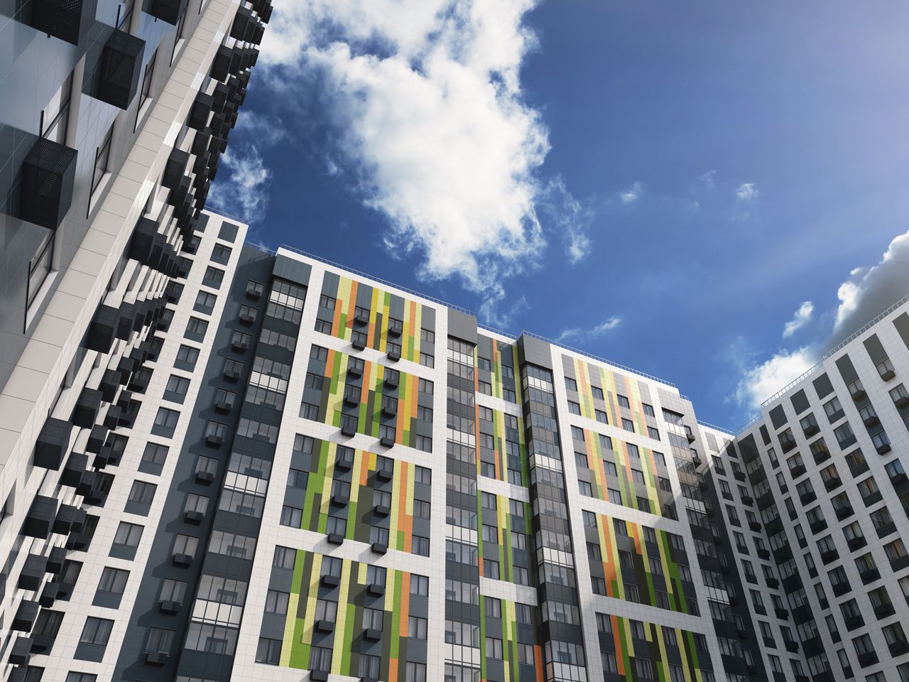 Жилой фонд состоит из большого количества квартир, с огромным выбор планировок (91 вариант), площадей и количества комнат. Планируется сдать все жилые объекты без чистовой отделки, но застройщик может предложить варианты с базовым ремонтом в нейтральных тонах, для удобства будущих жильцов. Высота потолков жилых помещений 2,8 метра. Есть кварциты типа skyflat с потолками 4,2 метра, панорамным окном той же высоты и возможностью воплощениям самых смелых дизайнерских идей.